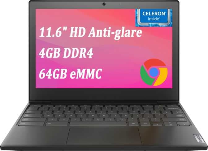 El Lenovo IdeaPad 3 Chromebook de 11.6 pulgadas es una opción de laptop que corre bajo Chrome OS, dirigido a usuarios que buscan manejar tareas básicas diarias. En su configuración, se incluye un procesador Intel Celeron N4020 con una frecuencia base de 1.1 GHz, acompañado de 4 GB de memoria RAM.